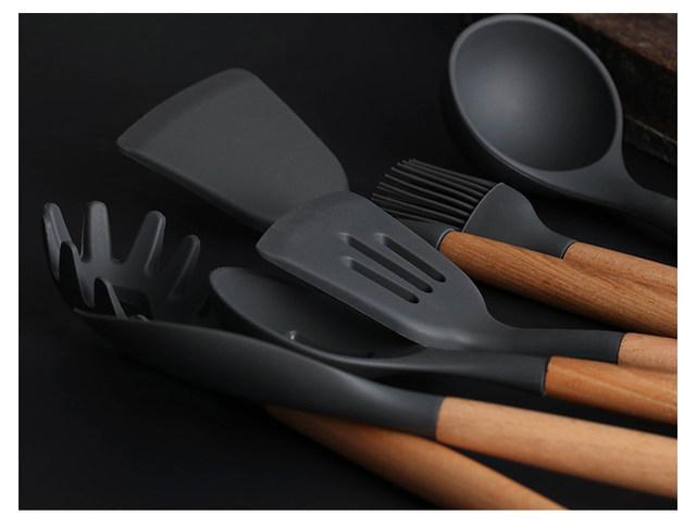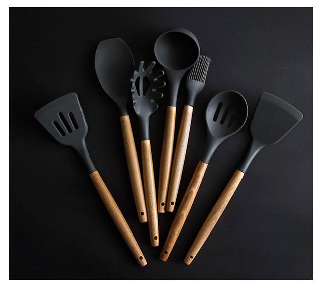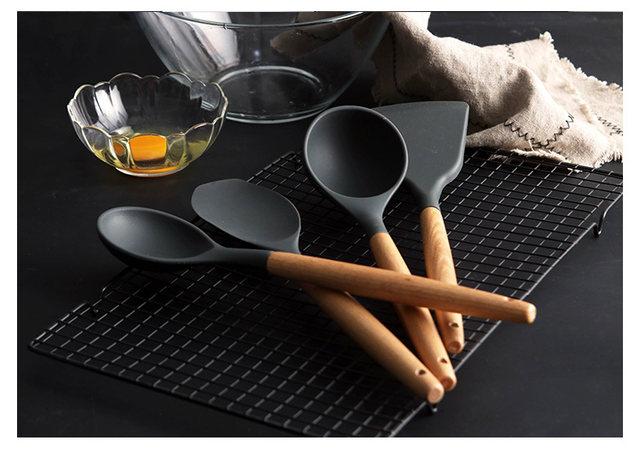 Silicone Kitchen Tools Set Cooking Tools Utensils Set Spatula Shovel Soup Spoon with Wooden Handle Special Heat-resistant Design
